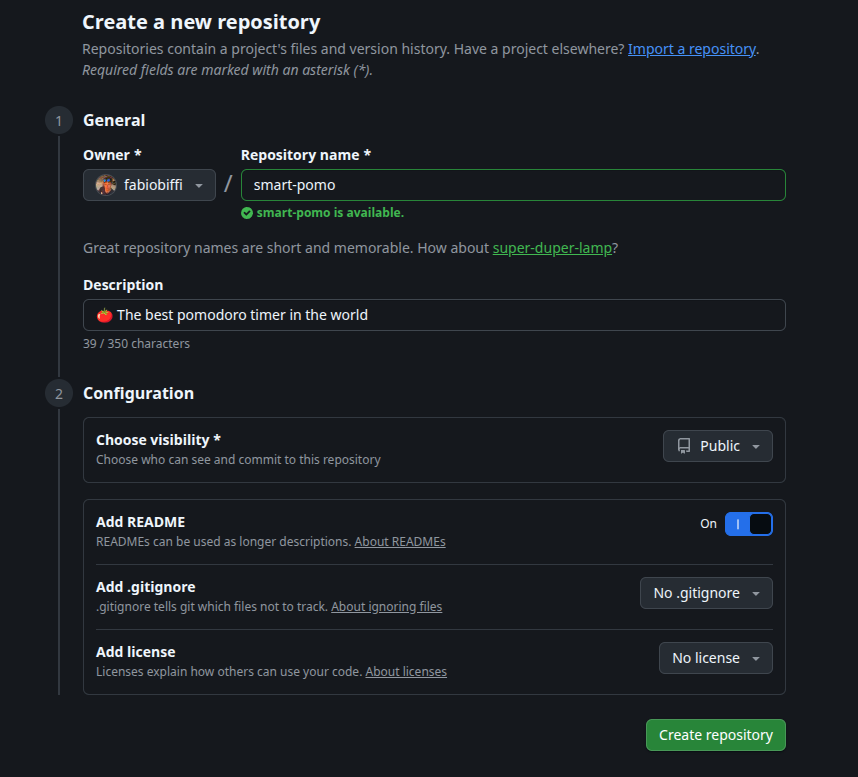 I named the project smart-pomo, partly because it sounds decent, and partly because it could realistically live on a domain like smartpomo.com in the future.